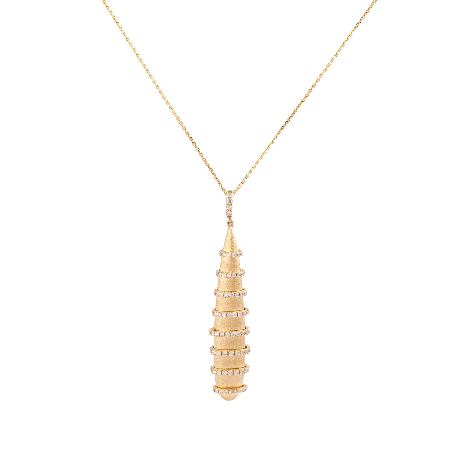 Unit price perUnleash your inner radiance with this breathtaking 14KT yellow brushed gold pendant adorned with 0.40 carats of dazzling diamonds, hanging from a 14KT yellow gold chain, measuring 18".