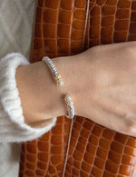 Unit price perDazzling diamonds illuminate 14KT gold and sterling silver on this open stackable bracelet. Thanks to a Moire Beaded pattern, it's embellished by intricate texture. Pairs perfectly with additional VAHAN bracelets for a standout stacked effect.